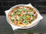 Chicken, mushrooms, green peppers, marinara, & mozzarella.