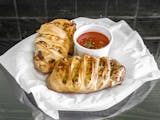 Stuffed with pesto herbs sauce, pepperoni, and mozzarella. Served with a side of marinara sauce.